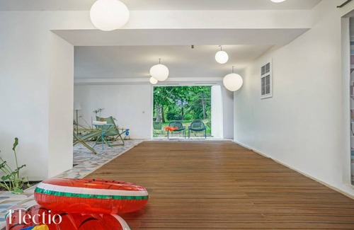 Our large building is divided into two separate sections. We live in the first part, while the second is dedicated to rental. It has 3 bedrooms and 2 suites with minimalist design, each equipped with a bathroom and a toilet, covering an area of 450 m². You can relax in the living room with a fireplace and share delicious moments with family or friends in the large dining room-kitchen. For a refreshing dip, you can enjoy our indoor heated pool with a liftable bottom.