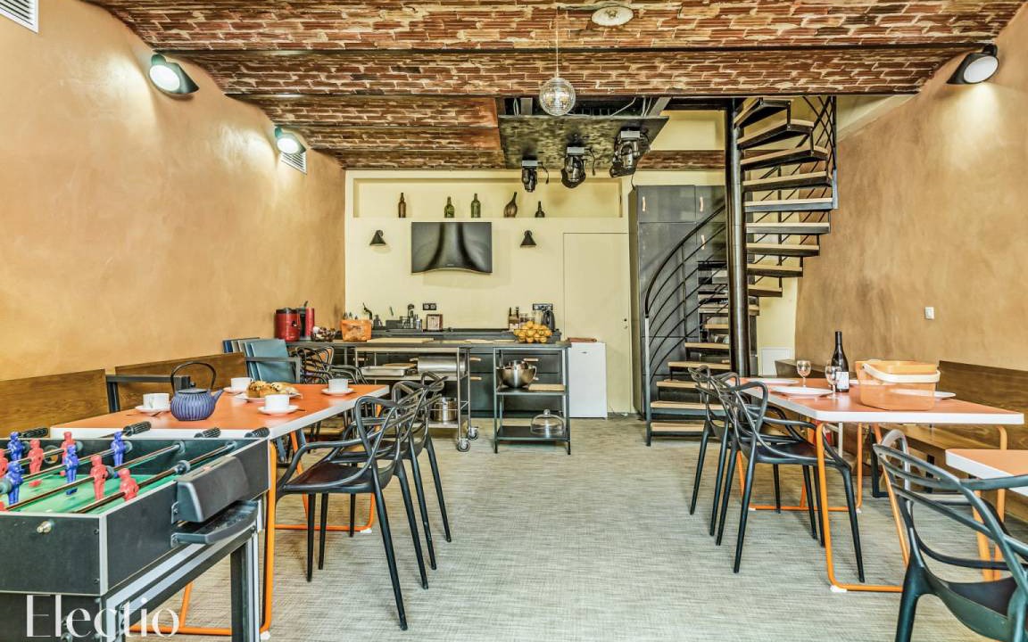 On entering, the solid wooden door will reveal the history of this house, with its entrance hall and its majestic staircase made of baked terracotta tiles. You will discover a first living room at the entrance, with two large windows providing beautiful brightness. You will find a bench, inflatable armchairs and two small tables, one of which can also serve as a chessboard. Enjoy the warm atmosphere of this lounge, enhanced with a fireplace insert, books and children's games.