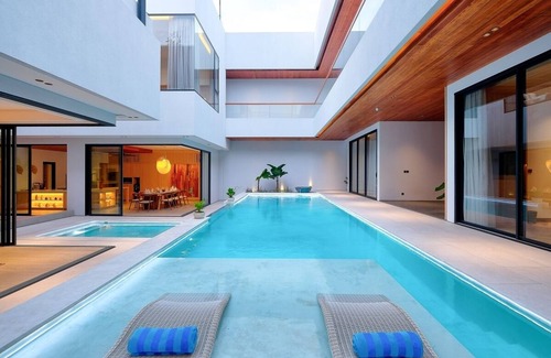 Nestled in a peaceful area near Jimbaran Bay, the villa offers easy access to Bali’s best beaches, airport (15 mins), beach clubs, and family attractions. Whether you're enjoying poolside afternoons, sharing meals under the stars, or relaxing in the spacious indoor lounge, this villa is your perfect Bali home away from home.