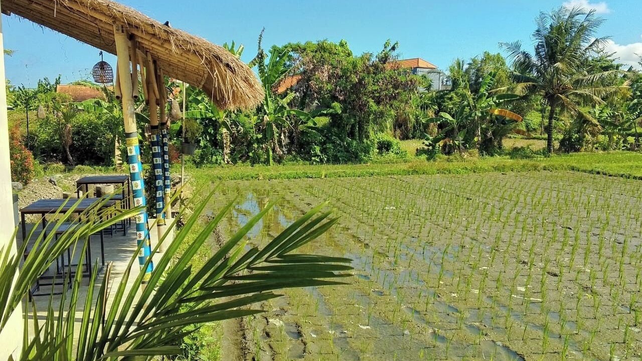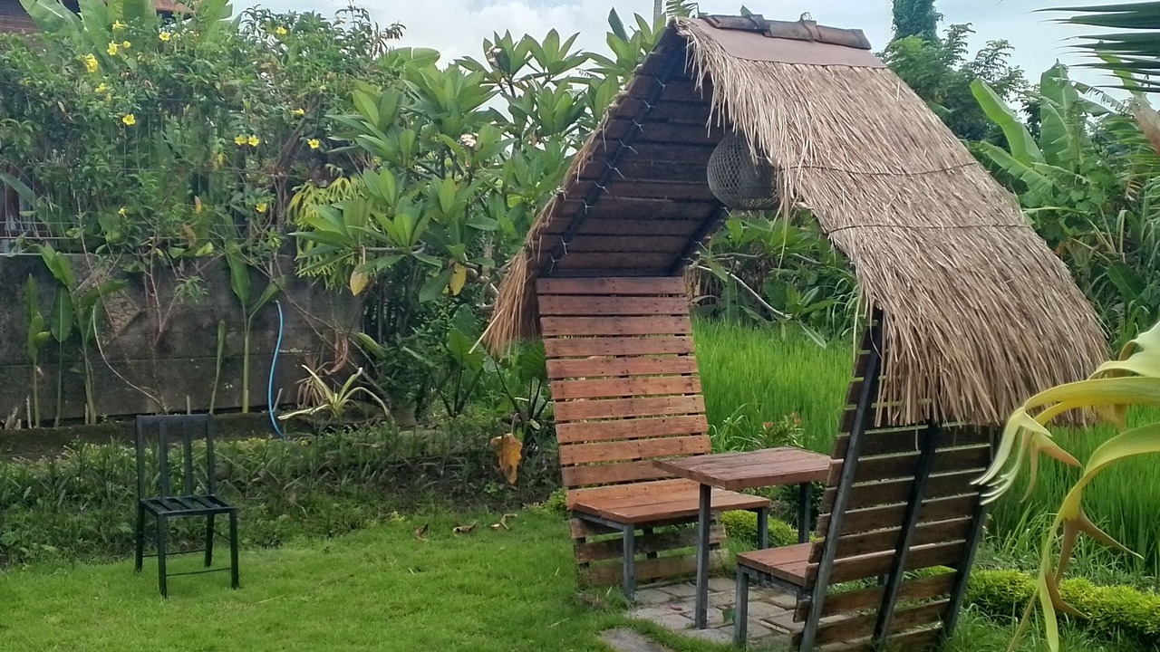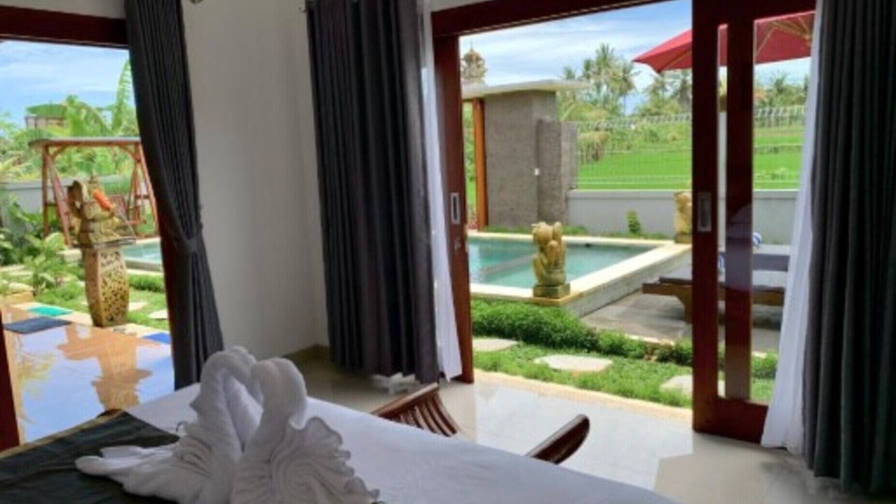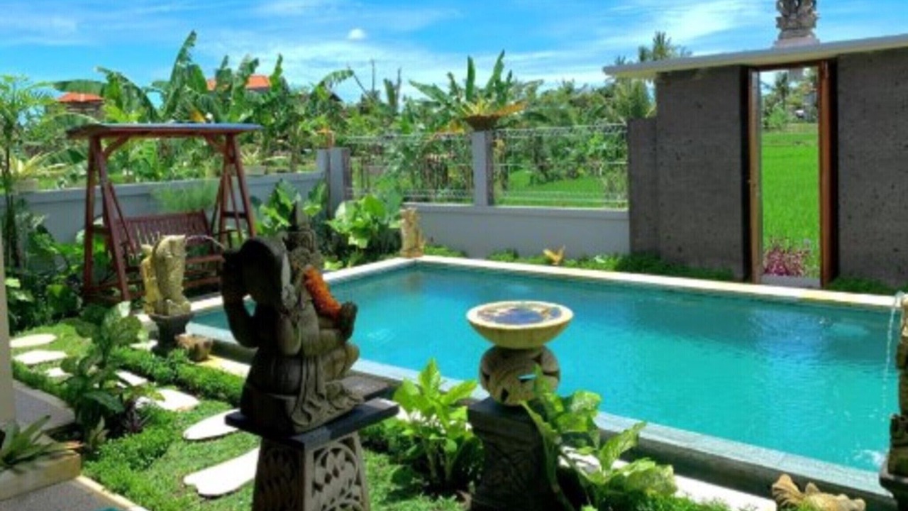 Consider this villa your home away from home while you visit Bali. This lovely property features 1 bedroom with a cozy queen bed, a well-equipped bathroom with a shower and bidet, and convenient amenities like a hair dryer, WiFi, and AC. Nestled in a beautiful setting, this quaint villa offers a peaceful retreat for guests looking to unwind and relax. with a beautiful rural view, standing between residential areas with rice fields next to the villa. Private villas which have 1 building with 2 rooms, and 1 villa building with 3 rooms that are integrated with the residents' rice fields. Apart from renting out villas, we also rent out rooms, as we are currently offering, where you will share a private pool with your neighbors in the same villa building as you.We're happy to assist with any questions while you stay at our villa.