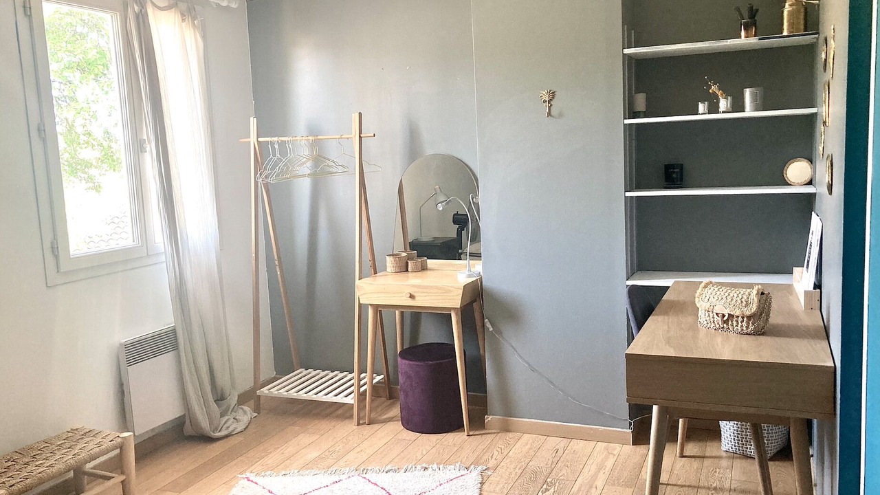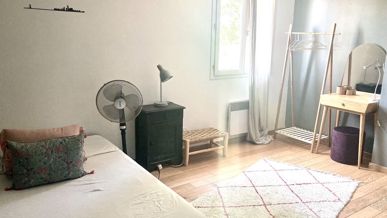 You have a living room and a fully equipped kitchen, a terrace with pool and garden furniture, a patio with barbecue, a large master bedroom (20m2) with walk-in shower, and a bathroom with bathtub and 3 bedrooms, 2 for children with single bed and 1 with double bed 160 cm. Internet connection, private parking and many leisure facilities such as a ping-pong table, bicycles .. Ideal for a family with children, the house is located on a fenced and access to the pool is secure (security glass barriers and glass door). You can reach the city center within minutes and access to many shops, markets and restaurants. A foot in less than 5 minutes you will find primeur, butcher, bakery, pharmacy, wine shop and newsagent.