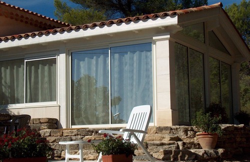 Nice bright bungalow on one level in Provence in the Luberon National Park, adjoining the owner's house, in the countryside, on the hillside, beautiful view of olive groves and forest, very peaceful environment.