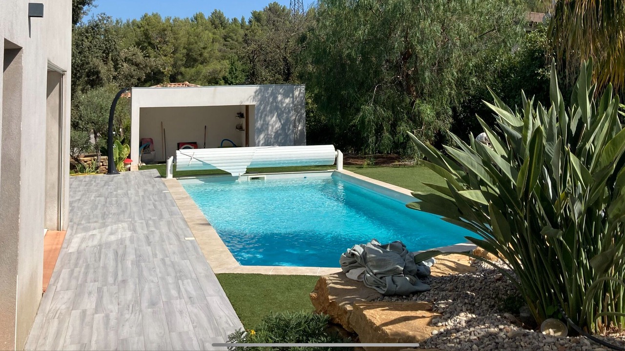 - A swimming pool (10m x 4m), equipped with a semi-rigid motorized shutter and a fence