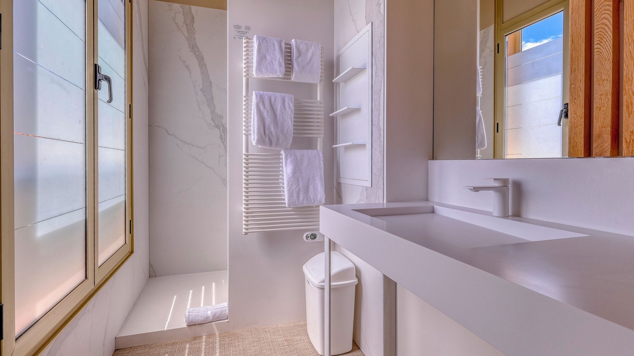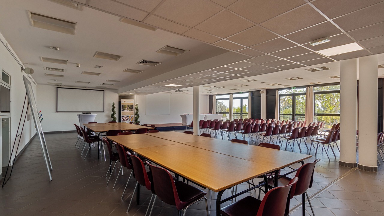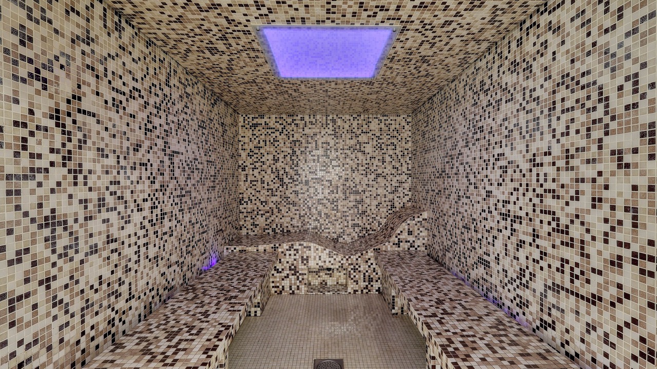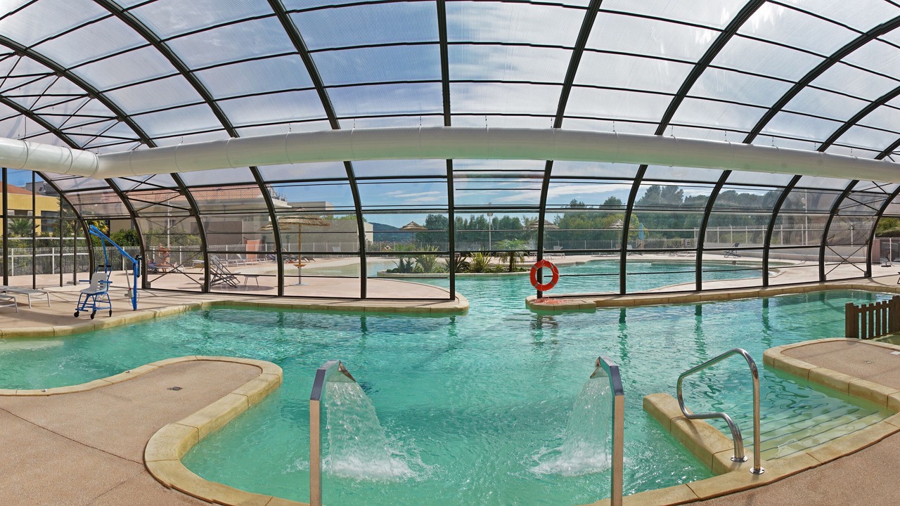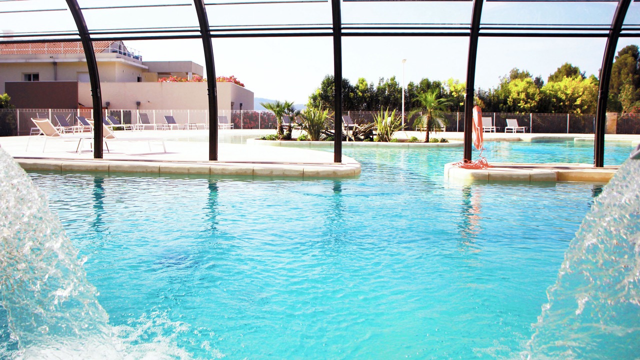 An indoor pool, an outdoor pool, and a children's pool are on site. Other recreational amenities include an outdoor tennis court and a fitness center.