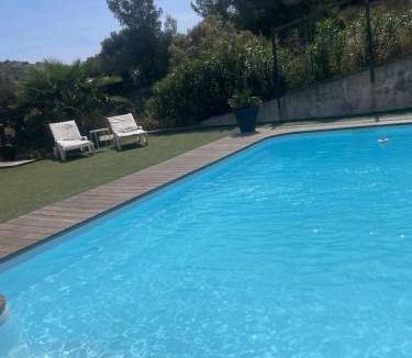 En Plein cœur des calanques à 800 m de la mer offers accommodations in Le Rove, a 16-minute walk from Plage de la Pointe de Figuerolles and 13 miles from Les Terrasses du Port Shopping Center. This property offers access to a terrace, free private parking, and free Wifi. Pool views are a highlight at the bed and breakfast's pool. Towels and bed linen are offered in the bed and breakfast. The accommodation is non-smoking. A selection of options including fresh pastries, fruit, and juice are available for the continental breakfast. Joliette Metro Station is 13 miles from En Plein cœur des calanques à 800 m de la mer, while Museum of European and Mediterranean Civilisations is 13 miles from the property. Marseille Provence Airport is 8.1 miles away.