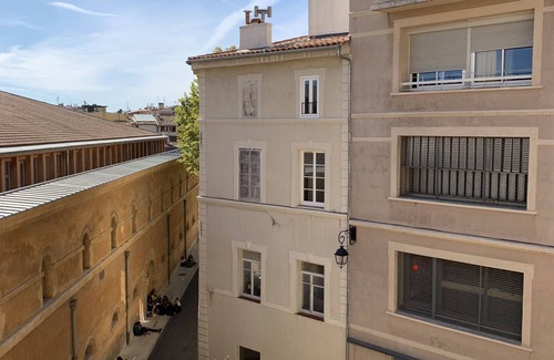 Ideally located in the historic center of Aix-en-Provence, place des prêcheurs, a few steps from the cathedral, on the top floor of a small charming building, completely renovated. This bright apartment with neat decoration will charm you. With its 5 through windows offering a triple exposure (north, south, west), all equipped with double glazing it is completely renovated and offers you all the comfort necessary for a pleasant stay in the heart of the city. Let yourself be seduced by the historic city and its exceptional heritage, its gastronomy, its museums and its typically Provencal art of living.
