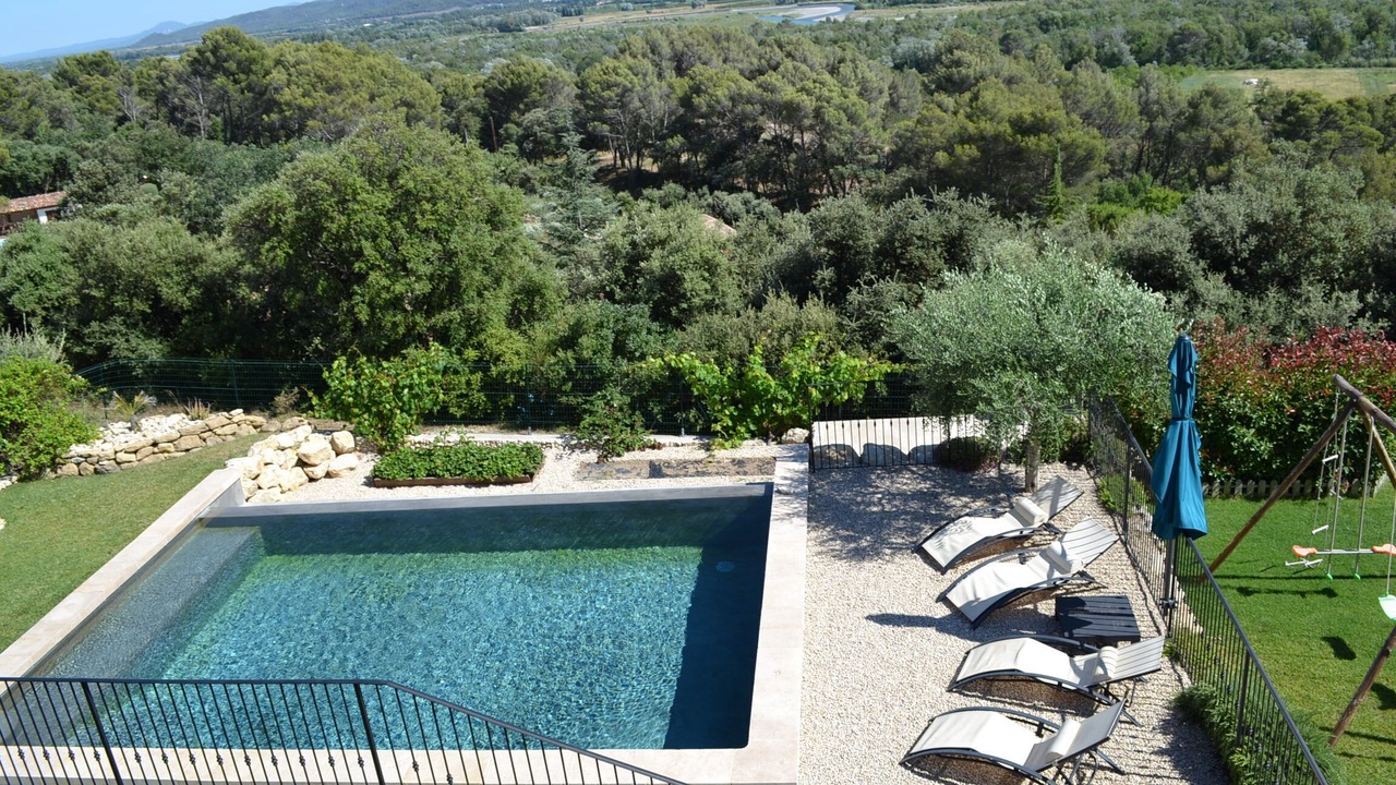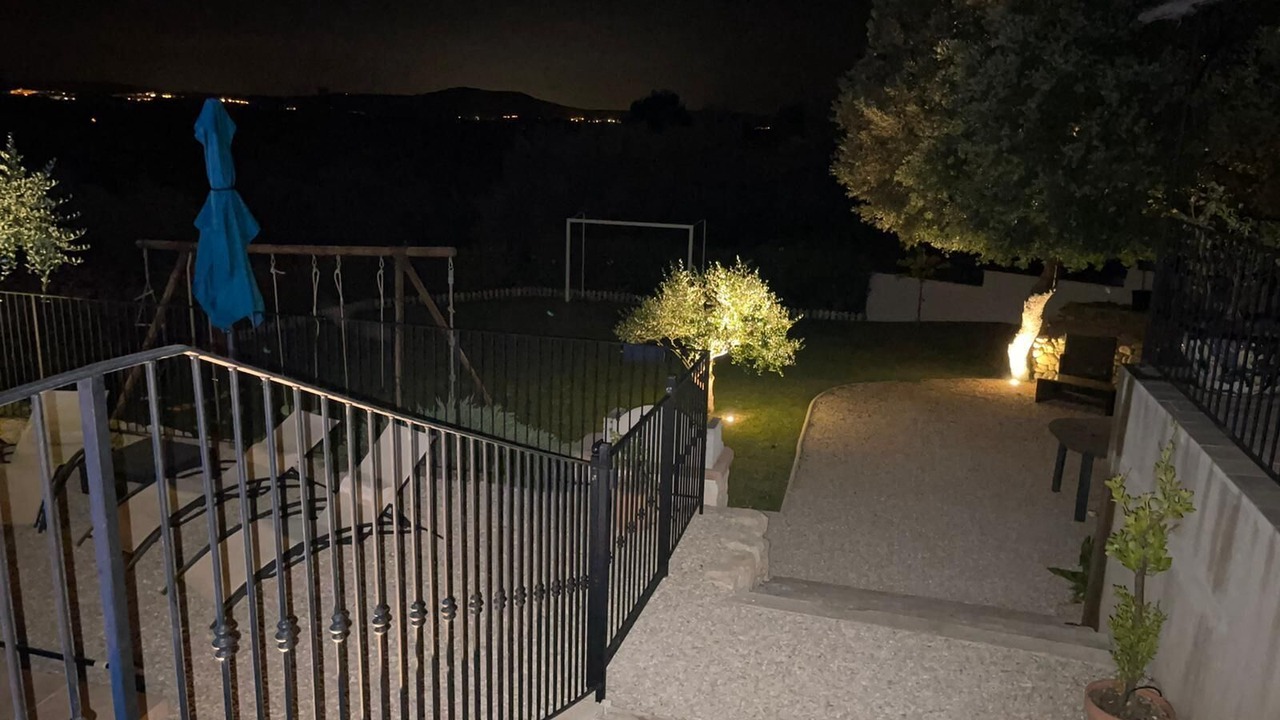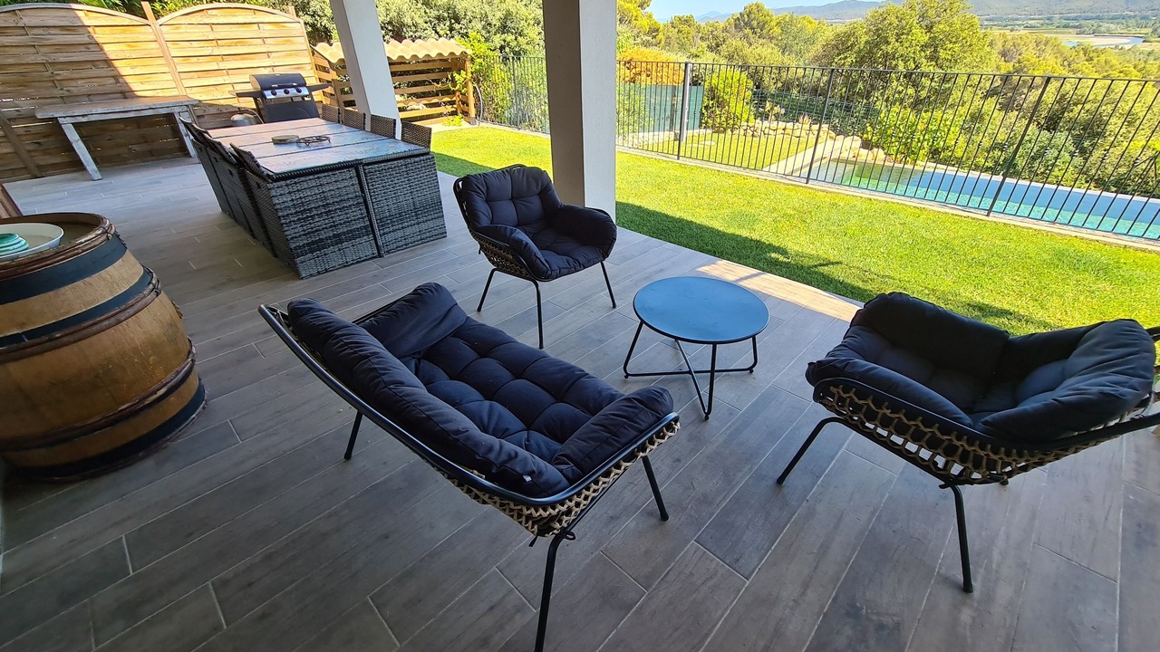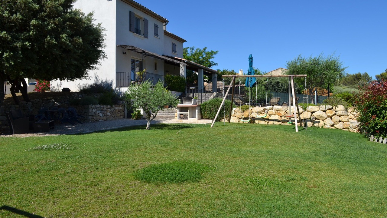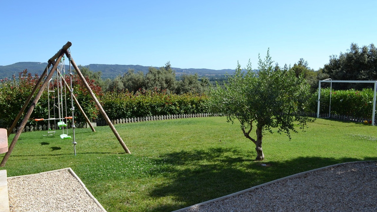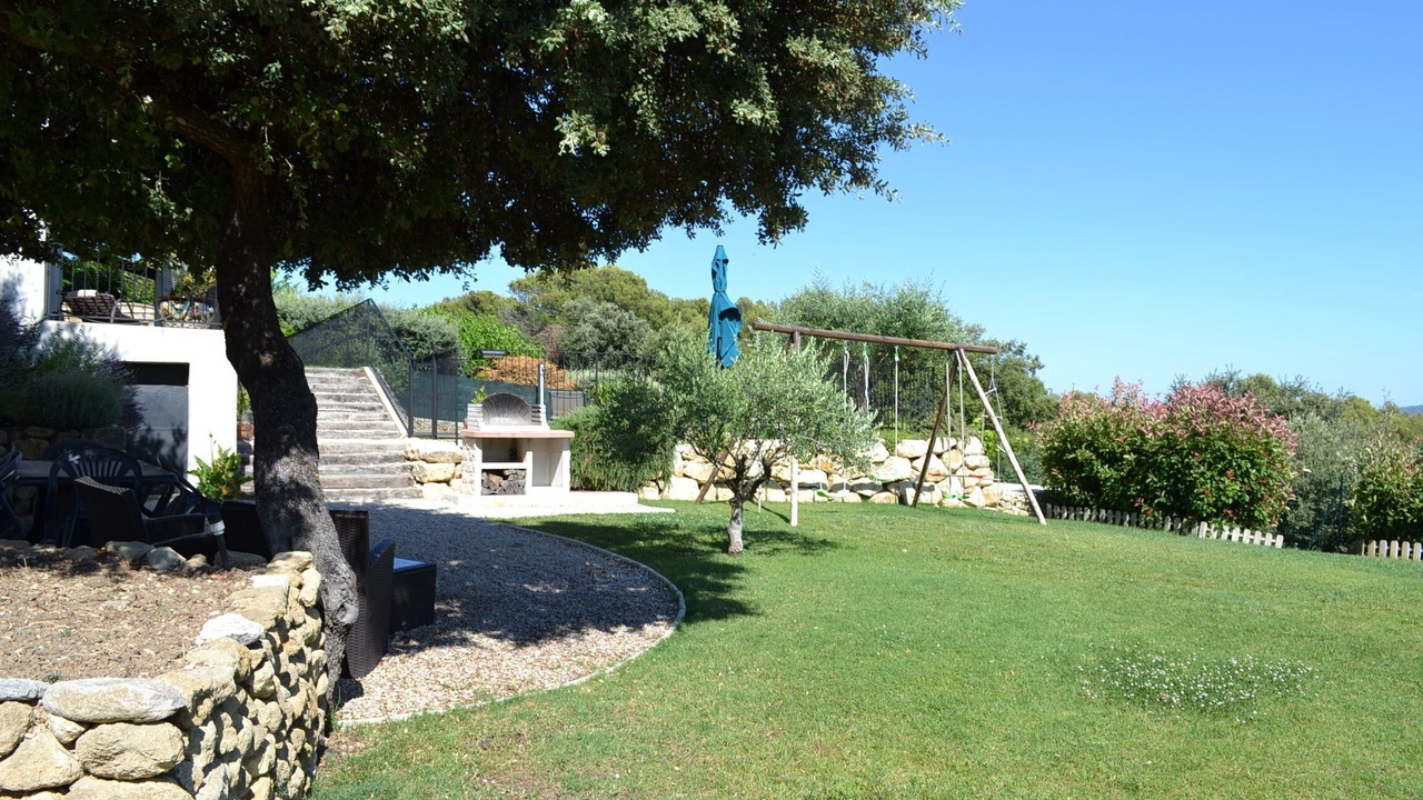 Its pleasant, welcoming and comfortable interior has a large living room opening onto the exteriors and a large shaded terrace overlooking an exceptional panoramic view, the swimming pool closed by security gates and the garden with swing, trampoline, barbecue and goal of football.