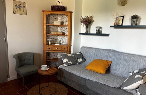 The Lavande gîte is an apartment on the 2nd floor, with a northeast orientation that can accommodate 2 to 6 people. . It consists of a living room with a kitchen equipped with a fridge with freezer compartment, an oven, microwave, dishwasher, filter coffee maker, kettle and toaster. The living room has a 3-seater sofa (convertible x 140 cm, Bultex mattress), a lounge armchair, a coffee table and a flat-screen TV (satellite connection with foreign channels). You will have a bedroom (1 x140cm bed) with chest of drawers and wardrobe, a second bedroom (2 x90cm beds) with chest of drawers and wardrobe and a bathroom (with shower and toilet.
