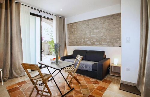 Relax in this charming loft with a sunny courtyard in the heart of the pretty village of St. Restitut.