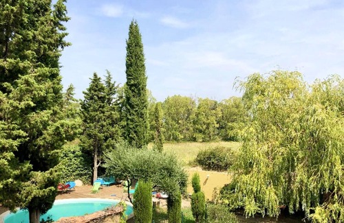 The kitchen is well-equipped for cooking up your favorite meals. Enjoy your feast around the dining table which seats 10 or outside, on the terrace or in the garden enjoying views of the swimming pool and the mountains.