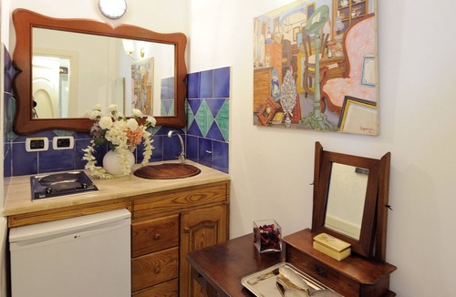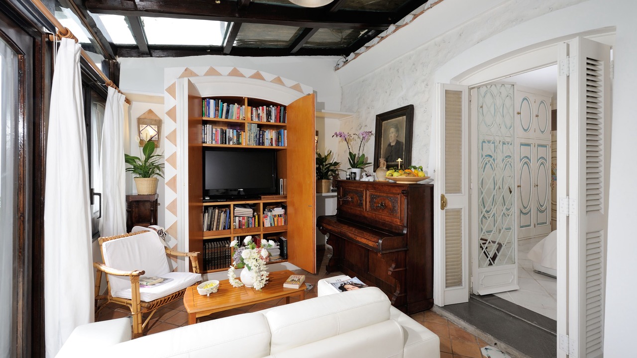 The two bedrooms have large wardrobes, safety-box, color television and a full bathroom with shower. The lounge area, with its cool terracotta tiles and wide windows embracing the sea, has a color television and a two-seater sofa bed by Divani & Divani by Natuzzi. There is available also a library with a wide selection of reading books and novels in English language. It is the perfect relaxing space to retire to after a day of enjoying the Coast. The complete modern kitchen boasts a new oven with gas cook top and overlooks a cozy four-seat dining table. And why not a tinker on the antique piano after dinner? The bright dining area also comes with more of those luscious sea views. A refrigerated wine cellar is inside the house, from where you can buy Italian red and white wines, of the most prestigious. The Villa offers also a romantic relaxation corner, a GAZEBO with seaview where you can relax while reading a book ....and another special feature :