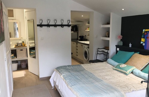 (Text automatically translated) Orange, near the Arc de Triomphe, 10 minutes from the Ancient Theatre, fully air-conditioned charming villa with private pool 8x4m, garden, trees and flowers, in a very quiet neighborhood. Carport, living room, kitchen with retractable windows opening onto the garden, 4 bedrooms with bathroom and separate toilet, the 4th room in a studio at the pool. Table tennis, Internet access, CanalSat, bicycles. (8 people max.)