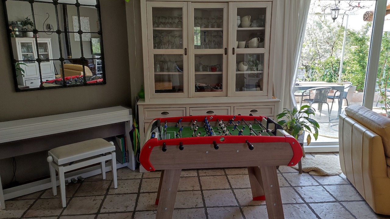 The garden of 1500m2 allow adults to relax on sun loungers in the shade of olive trees or weeping willow but also to play with the kids (badminton, fooot cages). Many games for children (swing, slide, hut, sandbox, tractors, scooter ...).