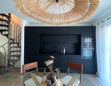 Joli mas bohème 60 m carré a seulement une minute à pied de la plage 4 personnes is located in Le Pradet, just a 9-minute walk from Plage de la Garonne and 7 miles from Toulon Train Station. This beachfront property offers access to a terrace and free private parking. Villa Noailles Art Centre is 7.8 miles away and La Favière is 21 miles from the vacation home. With free Wifi, this 1-bedroom vacation home provides a flat-screen TV, a washing machine, and a fully equipped kitchen with a dishwasher and oven. Towels and bed linen are provided in the vacation home. The property has an outdoor dining area. A baby safety gate is also available at the vacation home, while guests can also relax in the garden. Zénith Oméga Toulon is 7.3 miles from Joli mas bohème 60 m carré a seulement une minute à pied de la plage 4 personnes, while Circuit Paul Ricard is 23 miles away. Toulon - Hyeres Airport is 8.1 miles from the property.