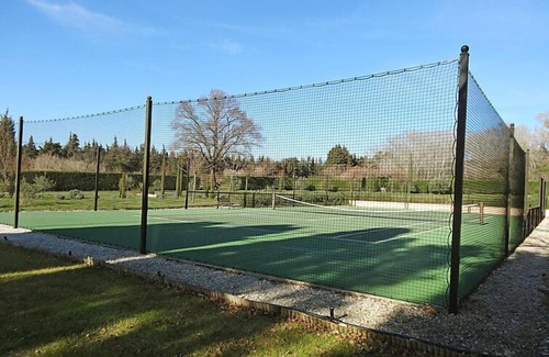 Velleron 5 km from l'Isle sur la Sorgue: Property consists of two houses. Villa "Le Bouloulou". In the residential district. Private: property 8'000 m2 (fenced), swimming pool heated (4 x 8 m, depth 80 - 170 cm, seasonal availability: 01.Apr. - 30.Sep.) with internal staircase and alarm system. Pool house, tennis, garden furniture, barbecue, parking on the premises. Shop 2 km, restaurant 2 km, bus stop "La grangette" 170 m. Golf course (18 hole) 4 km. Nearby attractions: Golf de Saumane de vaucluse 4 km, Fontaine de Vaucluse 7 km, Avignon 27 km, Gordes 30 km. Please note: car recommended. Main road close by. Please note: swimming pool is heated by a heat pump.