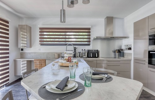 Cocoonr offers you this attractive, contemporary single-storey house with a large garden to rent in Roquefort-la-Bédoule, ideally located near the village of Roquefort-la-Bédoule and the calanques of Marseille and Cassis. Enjoy the Provencal way of life in a peaceful residential setting. With a surface area of 102 m² and able to accommodate up to 6 travellers, it comprises a lounge, a dining room, a fully-equipped kitchen, three bedrooms, three shower rooms and a large garden. Bed linen and towels of hotel quality (4/5 stars) are provided, and your bed will be made on arrival.