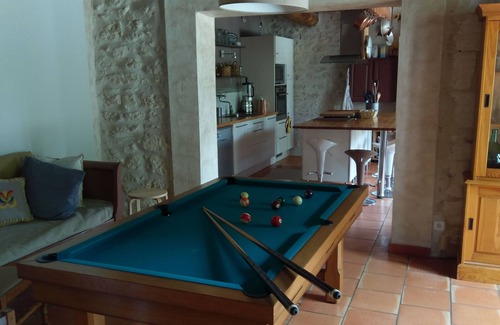 A dining-room with pool table