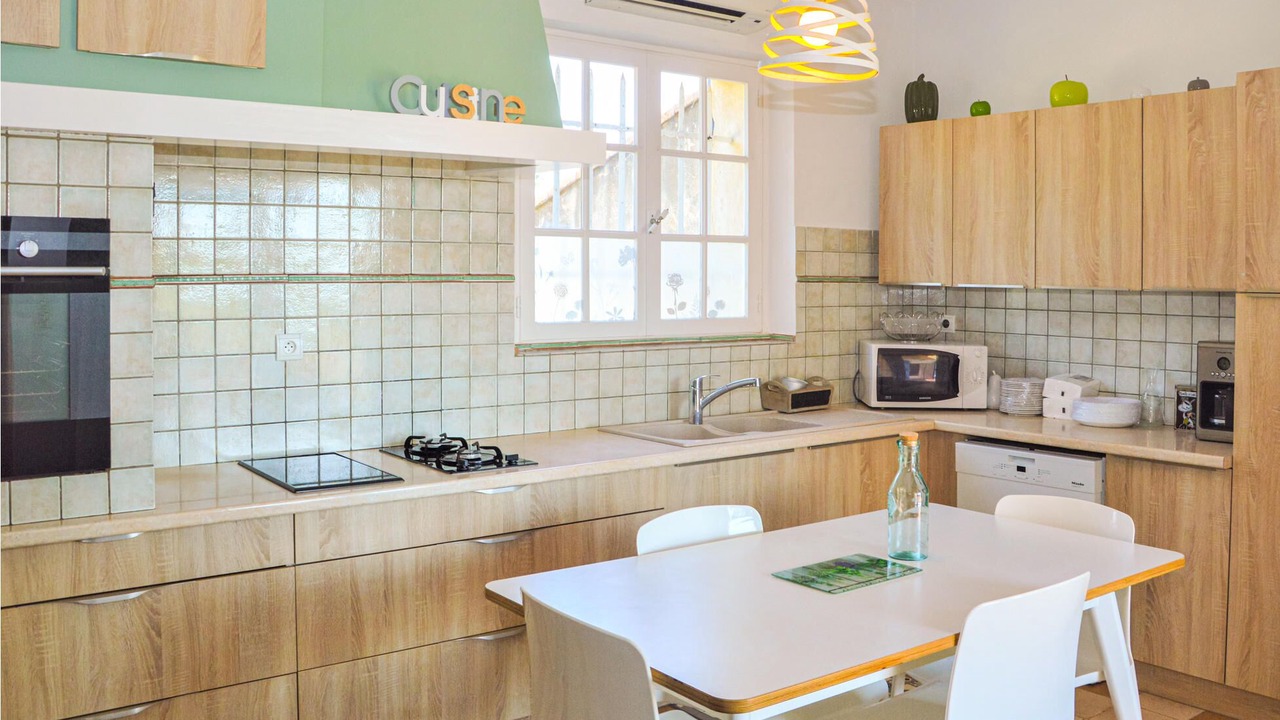 Between Marseille and Avignon, in the middle of the vineyards, this beautiful vacation home awaits you. The interior is decorated in light colors and offers a relaxed atmosphere - so the perfect setting for a family vacation in the rural idyll. You will find plenty of space for a large family.