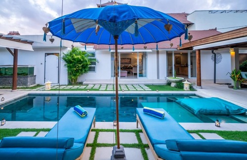 The Villa offers high end accommodation with unlimited Wi-Fi, airport pickup, unlimited filtered water and pool towels. The centre of the villa is the huge 9m x 3m step in pool surrounded by greenery, loungers, umbrella and bean bag chairs. Both ends of the pool have gazebos, one gazebo has a TV to watch from the pool.