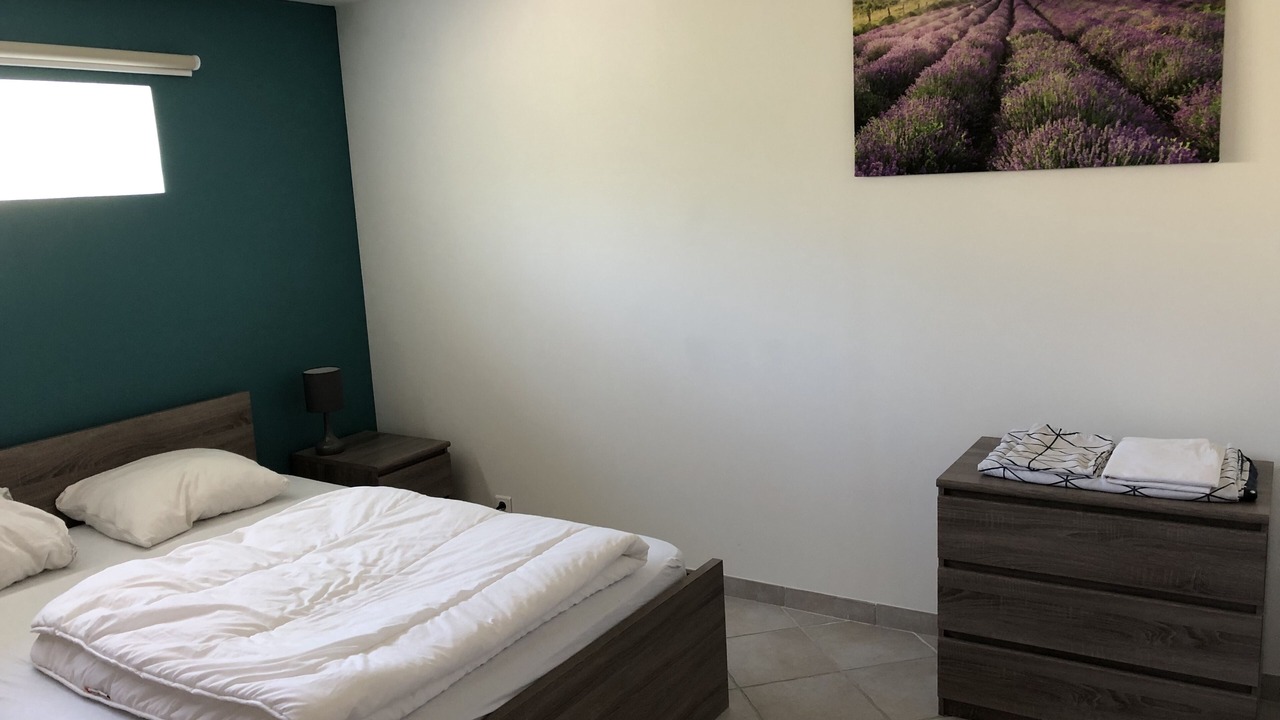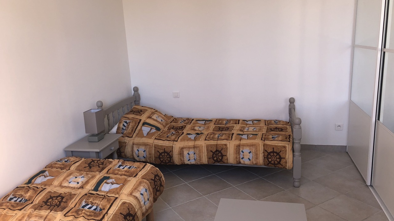 - 1 bedroom with 2 beds 90 x 190, 1 table, 1 bedside, 1 large closet.
