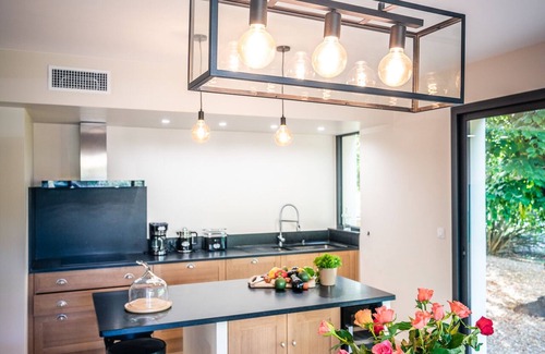 Large living room of 62 m2 with kitchen, granite worktop, induction hob, oven, microwave, American fridge, small appliances, wine cellar (On arrival, a few bottles of the winemaker owner will be cool! )