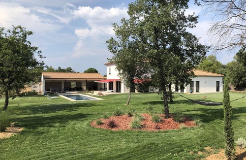 Recent villa (2016) of low energy construction with air cooling system, sleeps 10 (possibility 12), view of the Sainte-Baume massif, absolute tranquility, 700 meters from the picturesque Provencal village of Bras (supermarket, pharmacy , post office, bakery, restaurants, cafes) and 10 minutes from Saint-Maximin-la-Sainte-Baume.