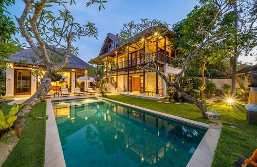 Atropical paradise with three bedrooms featuring stunning interiors, lush greenery, and traditional Balinese architecture. The luxurious décor compliments the tropical foliage that resides outdoors, along with the lavish swimming pool nestled amidst glorious greens. Perfect for both families and friends travelling to Bali, Jimbaran Bay is home to some of the best beaches, restaurants, sights and sounds on the island!