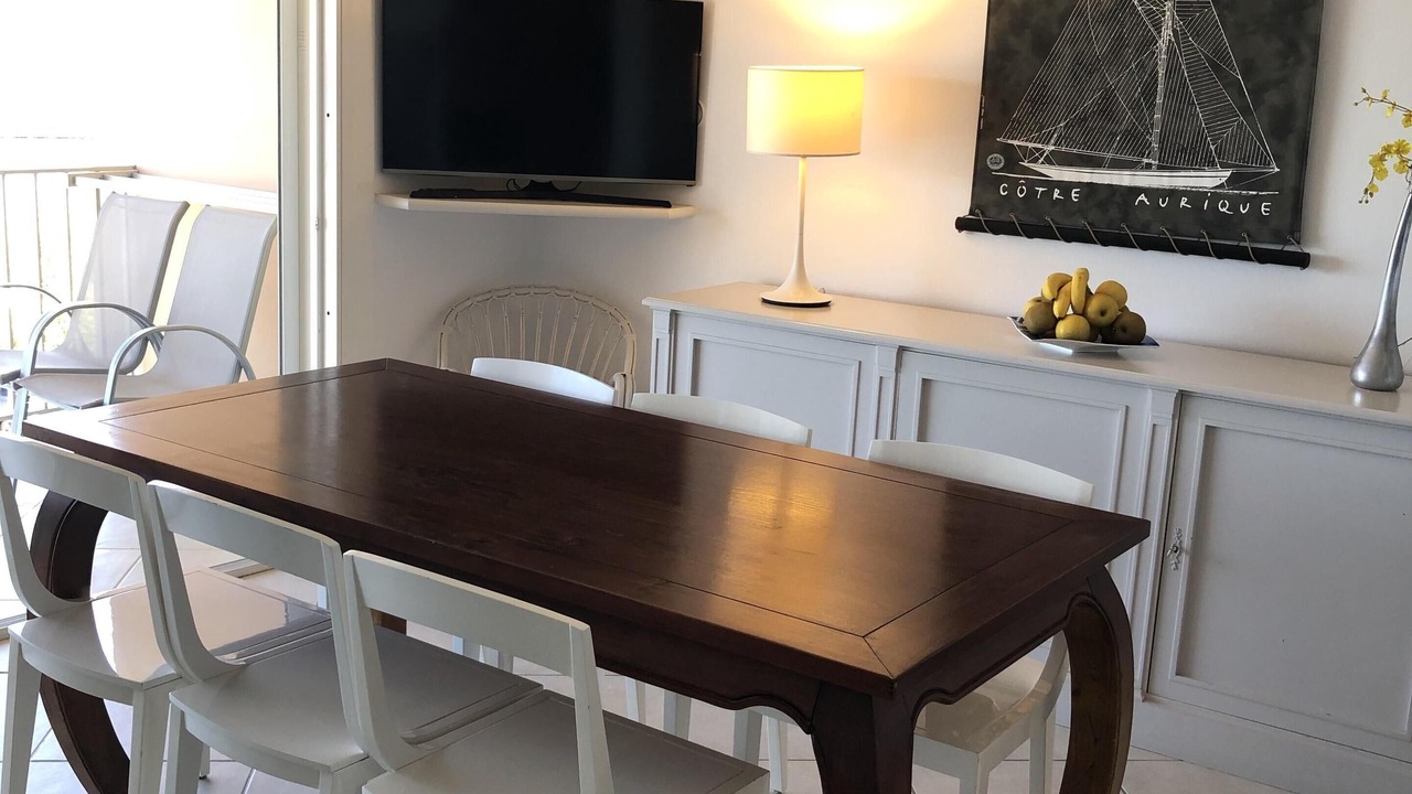 - La Terrasse exposed: East / South / West, with a full sea view at 180 ° on the Mediterranean Sea, is located directly on the beach of Le Lavandou, where you can see the Golden Islands (Ile du Levant , Port Cros and Porquerolles). It is equipped with a garden, consisting of a table of 7 chairs and 2 recliners - Its location and exposure are rare and exceptional. Our terrace is also equipped with an electric awning.