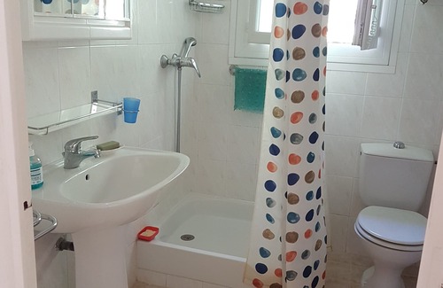 Independent situation in a villa on the ground floor and consists of a large living room with sofa (sleeping 1 person), a bedroom (sleeping 2 people), a fitted kitchen and a bathroom with toilet .