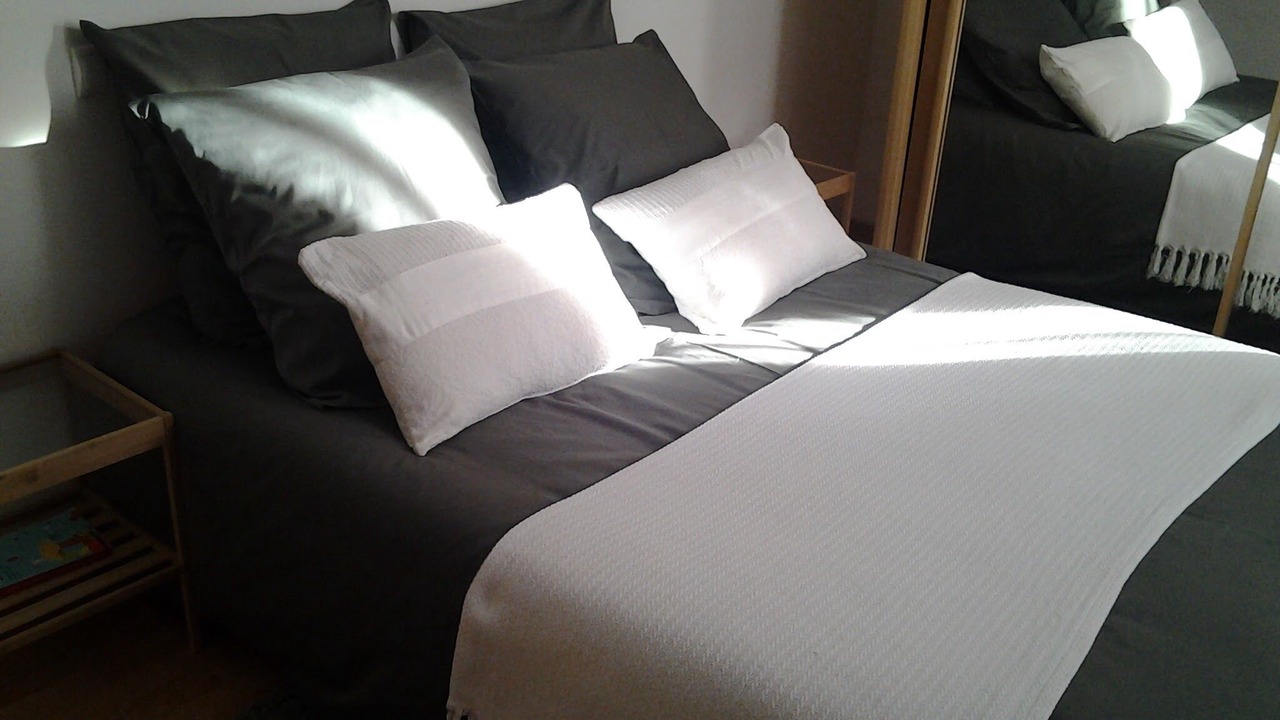 In residential area, Ground floor type 3 completely renovated private with 2 bedrooms one 2 beds 90/190 the other 1 bed 140/190 with wardrobe, chest of drawers bedside desk bed linen towels baby equipment (canvas bed chair high plastic tub small pot) 1 extra sleeping foam .for child or teenager