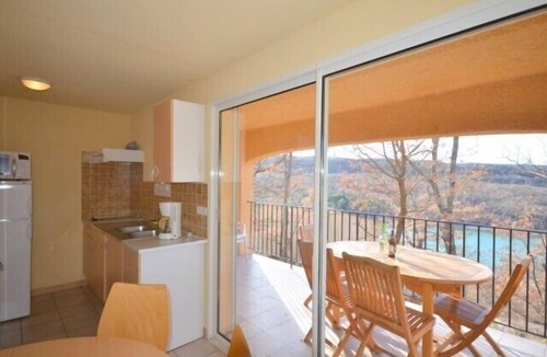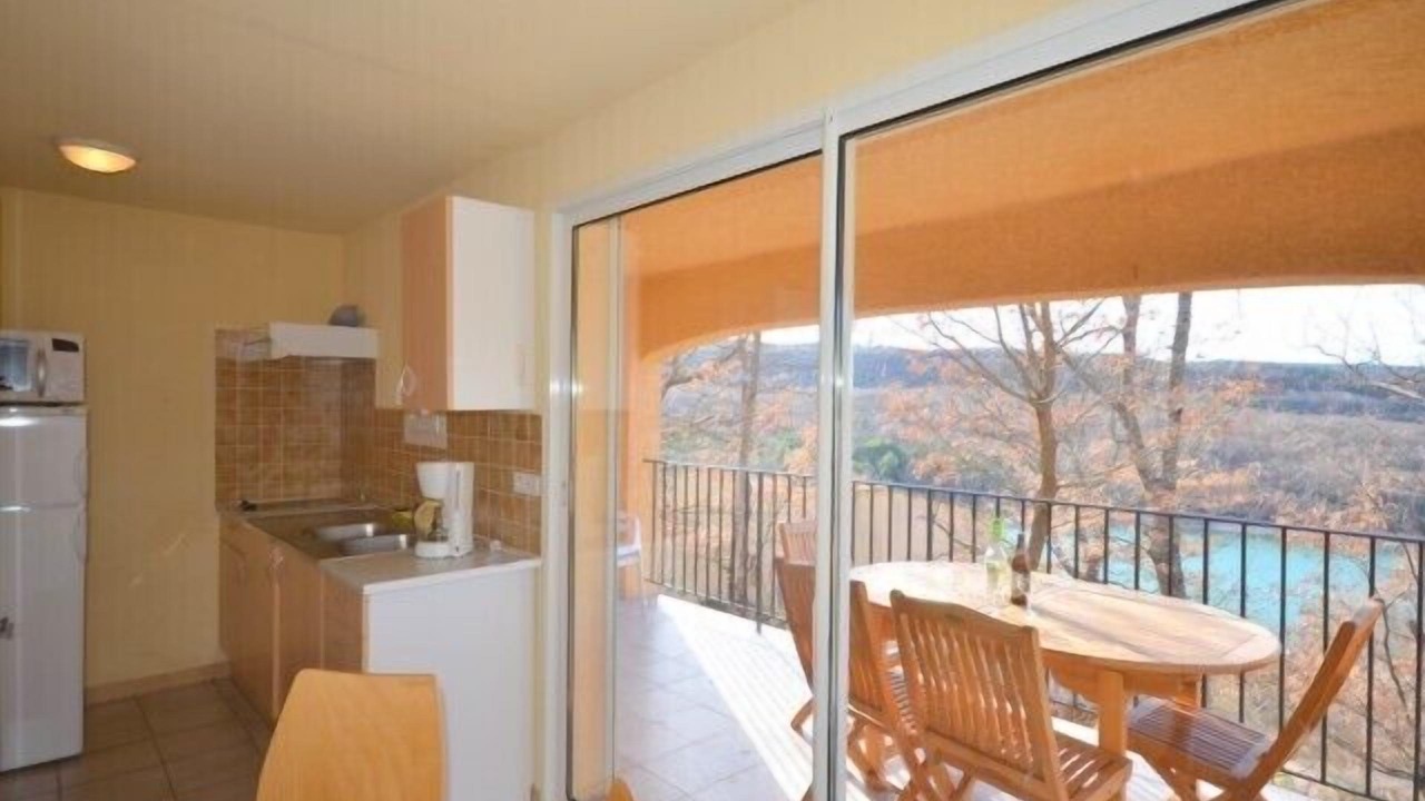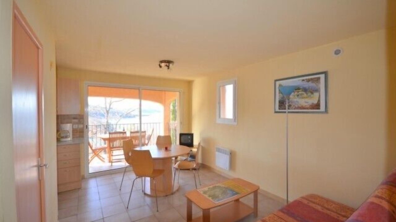 'Thyme' is a type of apartment 3, including a master bedroom with a large bed, a children bedroom with bunk beds, kitchenette, lounge area with sofa bed, television and DVD player. bathroom, separate toilet. a parking lot. It is one of the four houses of 'Lavender Lake' small residence on a shaded Chêneraie, hillside residence 'Les Lavandes du Lac offers stunning views of Lake St. Croix and the medieval village of Bauduen. People come here for its tranquility, its proximity to the lake and its beaches are within 200 meters of the residence. From the property a path through the woods takes you to the village of Bauduen with magnificent views of the lake, and you will if you wish to join the paths of Great Excursion. Four apartments are two types 3 (2 rooms) with terraces and stunning views of the lake on the ground floor and two types 2 (1 bedroom) on the first floor they have dining areas with tables and benches on the ground the residence with views of the lake and the village of Bauduen (5 minutes by car).