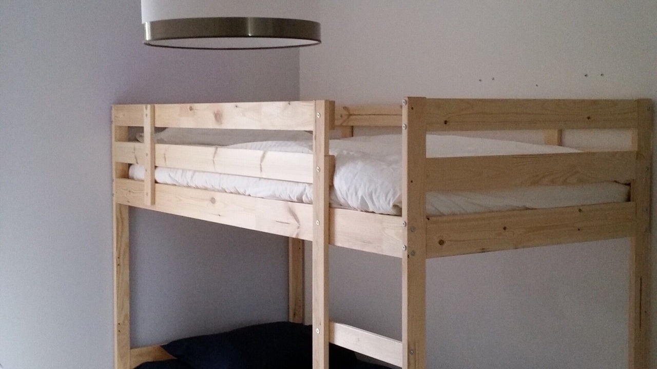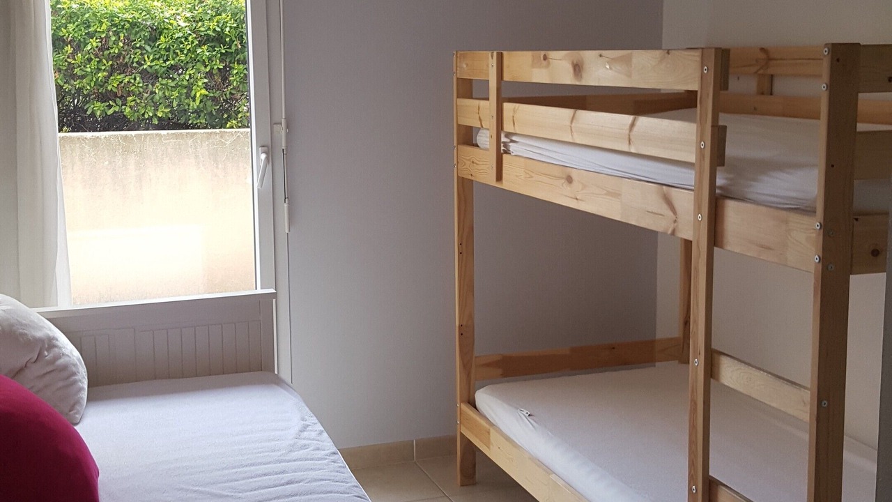 the 2 rooms with crossing on the terrace are equipped with a double bed and 2 children's bunk beds for one of them, bathroom and separate toilet