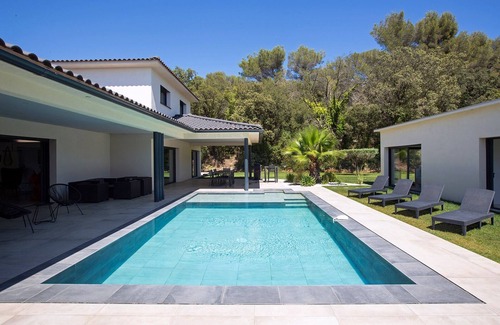 La villa est composée d'une bâtisse principale et d'une annexe "pool house" tout équipée.