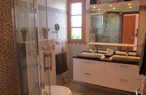 On an enclosed plot of 4000 m², the villa accommodates up to 10 people: 5 bedrooms, fitness room, covered dining area on the terrace (Moroccan lounge. Private swimming pool (10m x 5m), private parking.