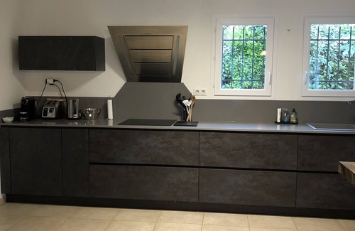 165 m² villa entirely renovated in 2021, located in the Pont Royal estate and golf course in the commune of Mallemort. The villa comprises 4 bedrooms, including 1 master suite on the ground floor with bathroom (bath and shower), toilet and dressing room. Upstairs is a second master suite with its own shower room, 2 other bedrooms and a bathroom. All bedrooms are air-conditioned. On the ground floor, there's a large living room with designer fireplace, a dining room opening onto a large modern kitchen equipped with American fridge, 2 ovens, hob, dishwasher, washing machine-dryer, Nespresso coffee machine. Numerous windows open onto a large 45 m² covered terrace where you can enjoy a pleasant stay, as well as onto the swimming pool. There's a large dining table, poolside garden furniture and table soccer. The 8 x 4 m pool is heated. All in a lush, private setting. The garden and pool are maintained weekly. The minimum stay is 7 days, from Sunday 4pm to Sunday 10am. Beds are made up on arrival and towels are provided. Please do not hesitate to contact us for further information.
