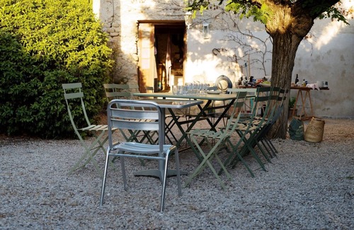 The house is organized around several unique outdoor spaces. A courtyard with a fig tree accessible by a stone staircase from the living room and a south terrace sheltered from the sun by an acacia tree and located opposite the kitchen of the house. in these two spaces it is possible to have meals around large tables. The fig tree courtyard has an outdoor oven. It is possible to install a summer kitchen on the south terrace, plancha, barbecue.