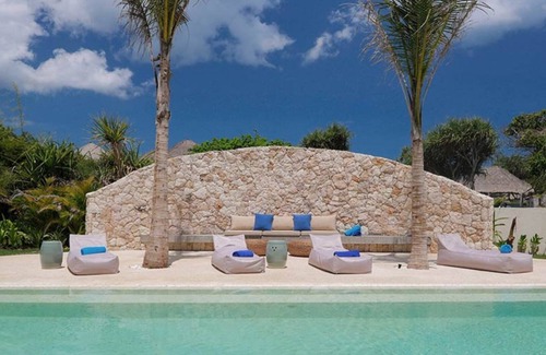 Designed by Bali-based Italian architect Valentina Audrito, noted for her playful use of space, Villa Seascape offers an extraordinary variety of living areas, orbiting a double-height living room that spills onto a poolside entertainment terrace with access onto the beach. The interiors are thoroughly contemporary, with chic minimalist furniture in cool aqua colours resting on polished pebble floors, warmed by the creative use of bamboo, teakwood, terrazzo and shell. With the exception of the master bedroom pavilion, privately tucked away in the garden behind, every room in the villa enjoys spectacular ocean views.